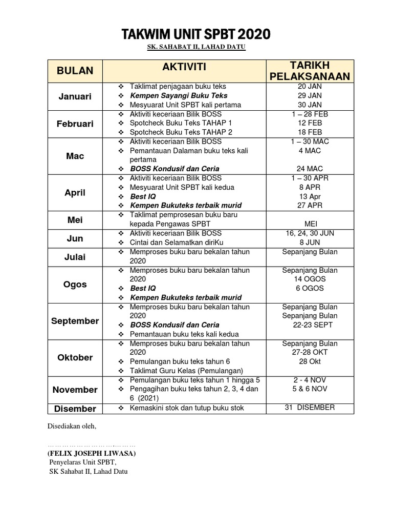 Contoh Takwim Spbt Sekolah Ms 111 112 Pdf